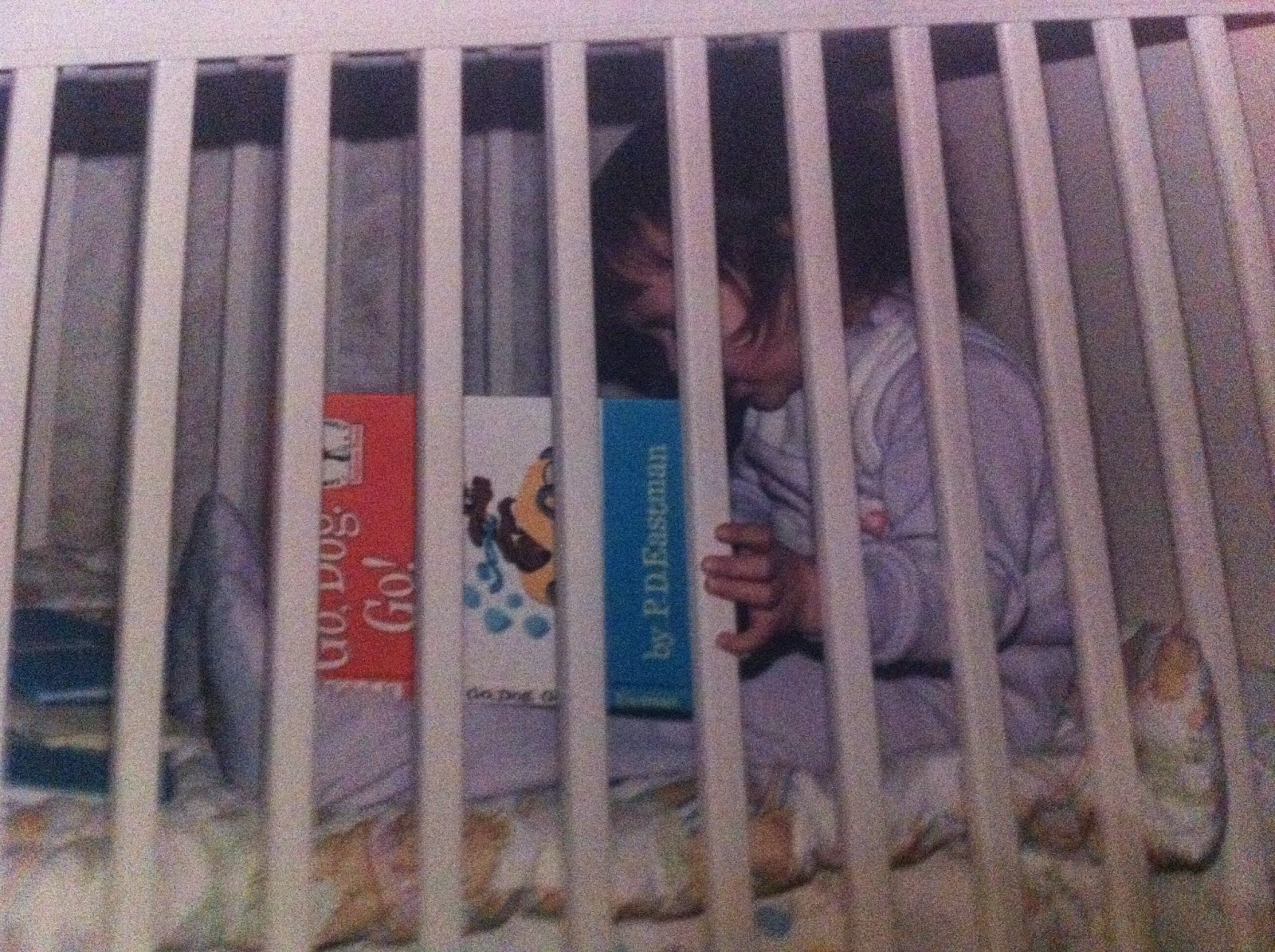 | Obligatory picture of Kiddo Kim "reading" around age 2. |